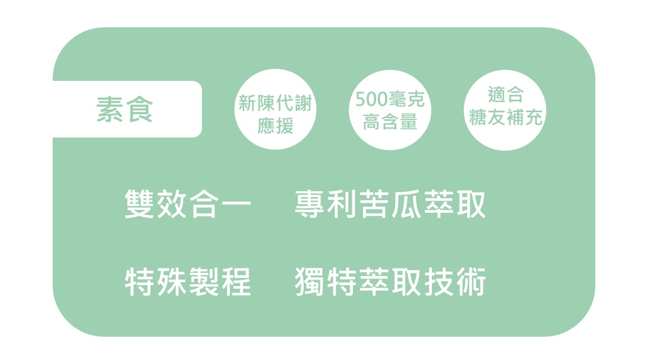 山苦瓜萃取物、微結晶狀α-纖維素、聚乙烯吡咯烷酮、羥丙基甲基纖維素(羥丙基甲基纖維素、水、氯化鈉)、硬脂酸鎂、二氧化矽、二氧化鈦、聚乙二醇(聚乙二醇、二丁基羥基甲苯)、食用黃色四號、食用黃色五號、食用藍色一號。